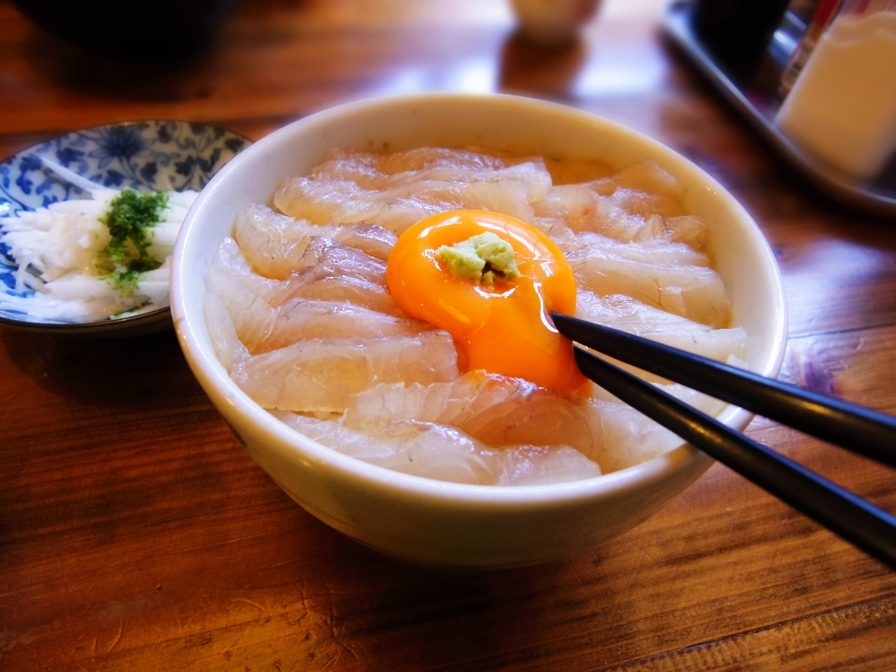 八戸市みなと食堂の平目漬丼は卵との相性が抜群!若葉ペンギンは空を飛べるか。