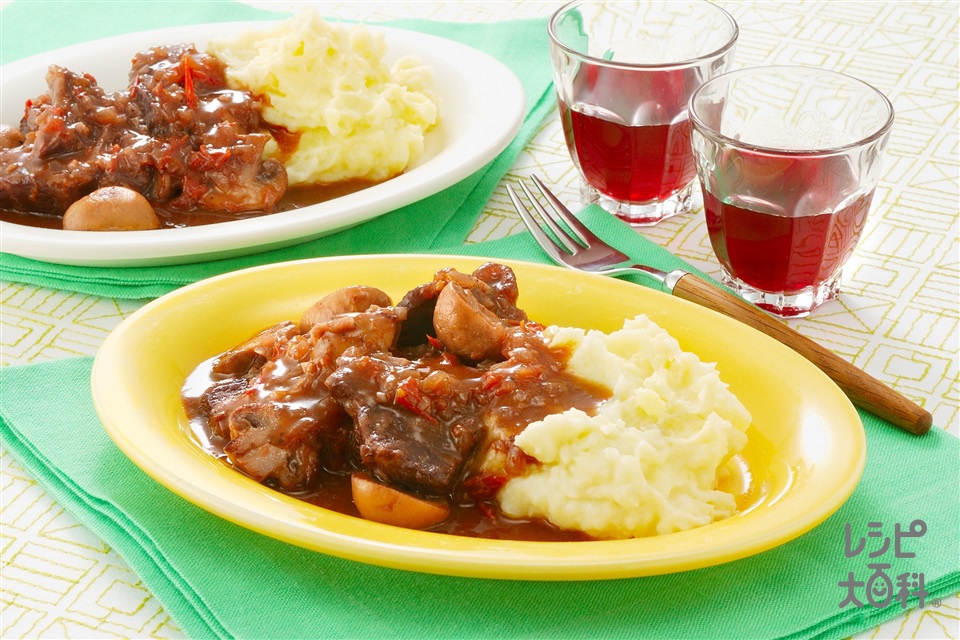 アメリカンビーフの赤ワイン煮込み チーズマッシュポテト添えレシピアメリカンビーフ&アメリカンポーク公式サイト 米国食肉輸出連合会。