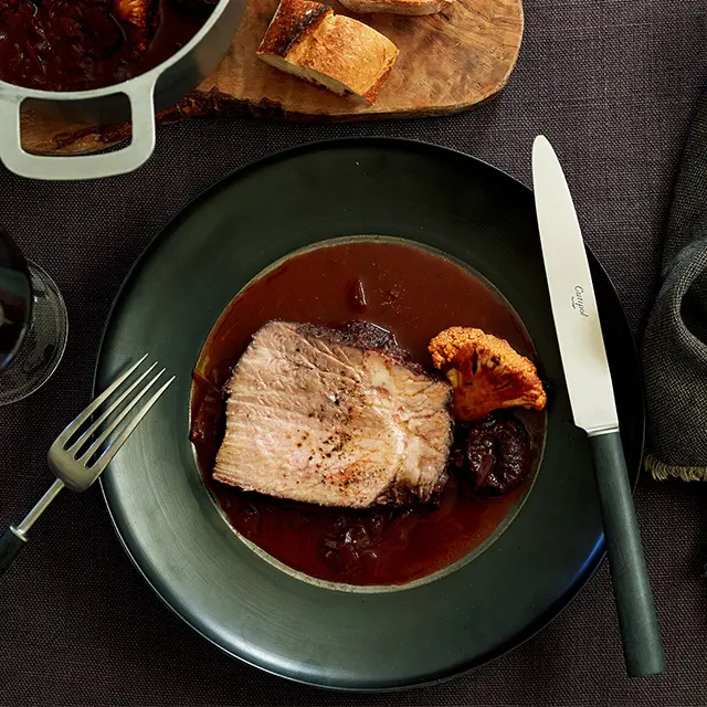 ほどよい酸味がクセになる「豚肉の赤ワイン煮」レシピ 平野由希子さんの肉の煮込み鍋Web eclat50代女性のためのファッション、ビューティ、ライフスタイル最新情報。
