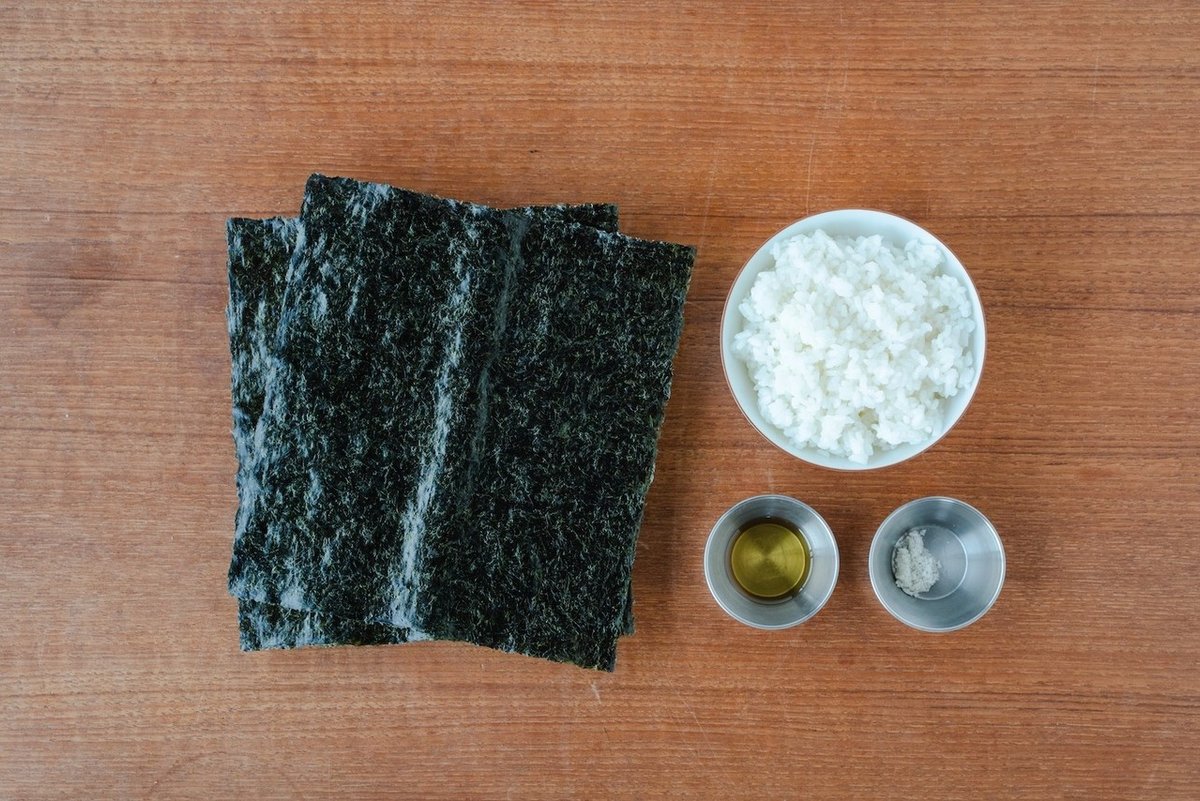塩たまごかけご飯 , 「瀬戸のほんじお」 適量, ご飯 150g, 卵 1個, 「GARI NO MOTO」 思ってる2倍の量,「味の素」だったら4振り , ごま油 小さじ1, 海苔 適量, 長ネギ 適量, ★味変でわさび,「瀬戸のほんじお」をフライパンで炒り、サラサラにする,。