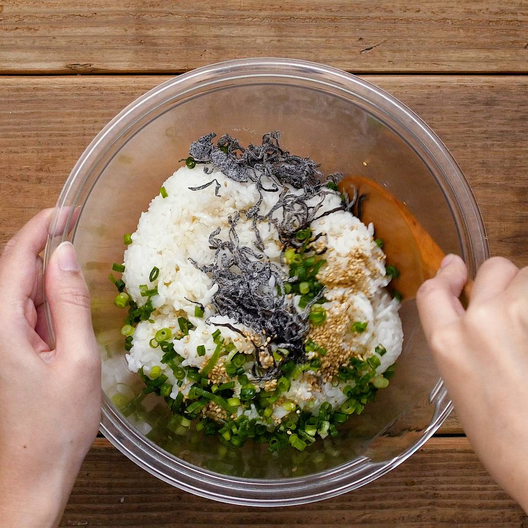 ハマごはん お手軽レシピon X: " 簡単レシピ!塩ラー油おにぎり①ごはん、大葉、鶏ガラの素、ごま油、塩コショウ、ラー油を混ぜおにぎりを作って完成!すぐできちゃうのでお弁当用に最適です! しそとごま油の風味も最高なので、お酒飲んでのシメの一品でも。