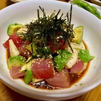 天然鮪とアボカドのとろろどんぶりナナズグリーンティー人気no.1のお食事メニュー👑 紀州勝浦で水揚げされた天然もちびんちょう鮪に、 アボカドと、 とろろ、たっぷりの薬味をトッピングしました🍽️ もちもちとした食感の鮪は旨みがしっかりと感じられます🐟 黒胡麻の。