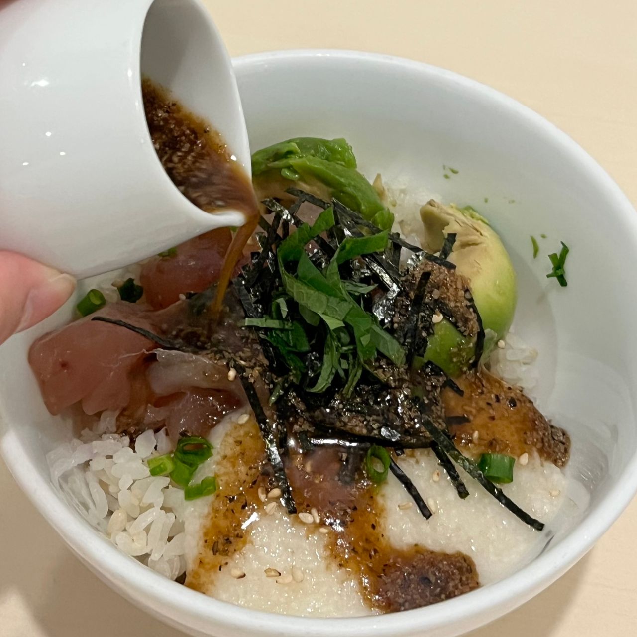 櫻井彩夏🌸 on X: "ナナズグリーンティーの、鮪とアボカドのとろろ丼が大好きだから、黒胡麻醤油タレも作って自分なりに再現したらめちゃめちゃ美味しかった〜!!!最近また自炊モチベが高いのでこの調子でいきたい꜆ . ̫ . ꜀あーたんごはん https:t.co。