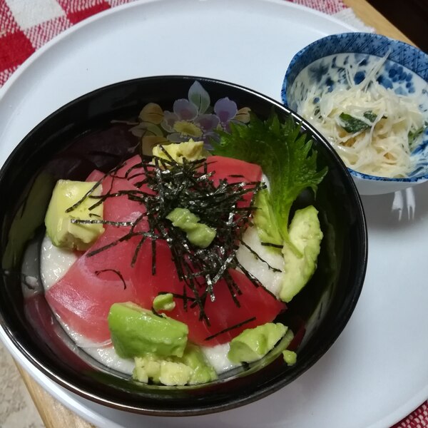 アボカドとまぐろ☆ふわふわ♪とろろ丼~刻みのり添え。