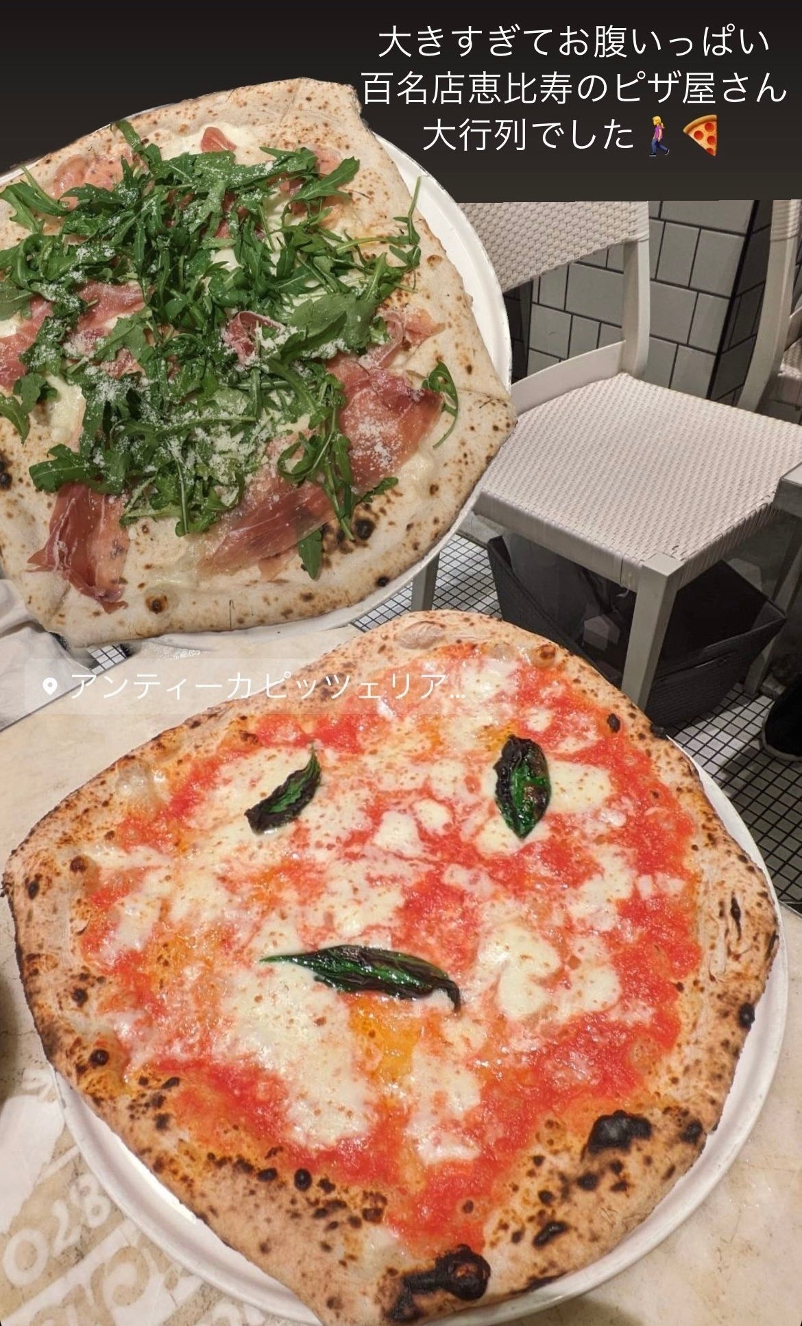 pizzeria da michele 恵比寿 ・豚バラ肉のラグーソースとほうれん草を使ったジェノベーゼのピッツァ ・牛肉のカルパッチョ・ナスのラザニア めっちゃ迷って期間限定ピザ! ピザ大きいー!とっても美味しい☺️ ピザ以外のお写真撮ってないことに気づいた悲しい。