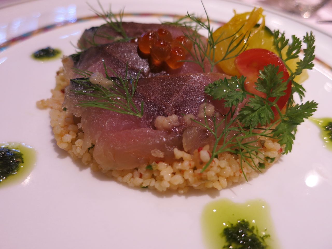 期間限定真鯖のハーブマリネ ビネガーでさっぱり食べられます♪ ランチメニューからお選びください。ラビチュード神楽坂ビストロ牛込柳町神楽坂牛込神楽坂ディナービストロランチレストランフレンチディナー3800円選べるプリフィックス。