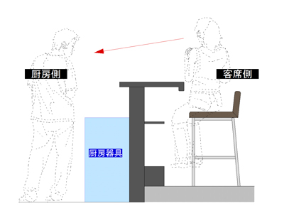 カウンター目線を合わせたい!フラットなカウンターを作る時の注意点飲食店デザイン研究所。