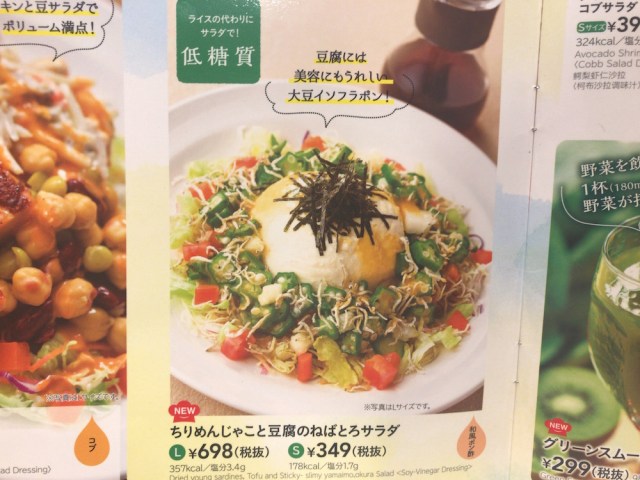 メニュー図鑑 ガストの「豆腐と山芋オクラのねばとろサラダ L 」おうちで外食。