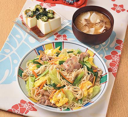 焼きそうめんの献立 副菜:いんげんの白和え、汁物:水菜とかぶのみそ汁 献立・メニュー 味の素パーク たべる楽しさを、もっと。