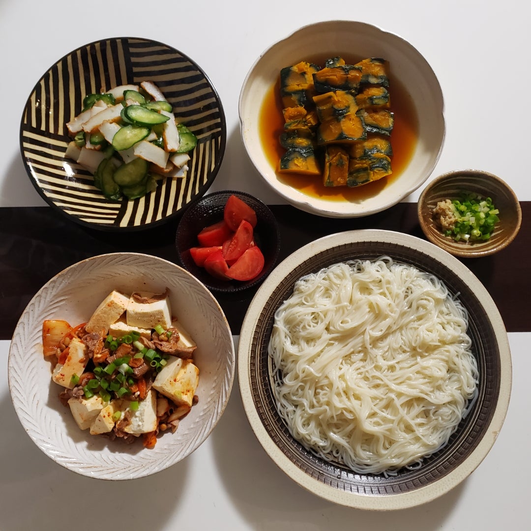 そうめんの献立 2023年8月14日の昼ごはん我が家の献立の記録、糖尿病で食事制限、リウマチの記録。