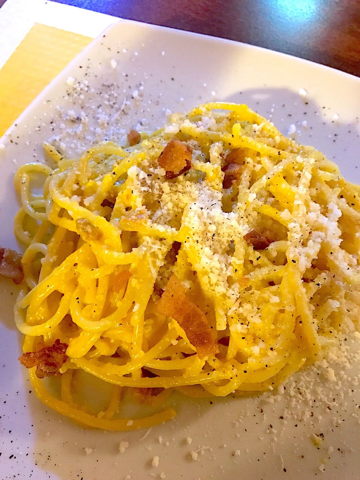 ローマのカルボナーラ発祥のお店la Carbonaraでカルボナーラはシンプルですごく美味かった‼️オープンしてすぐ入ったのにのすぐ満席になりました‼️ 流石です🙏 #サルーテ ピザ#ピッツァ#結婚式。