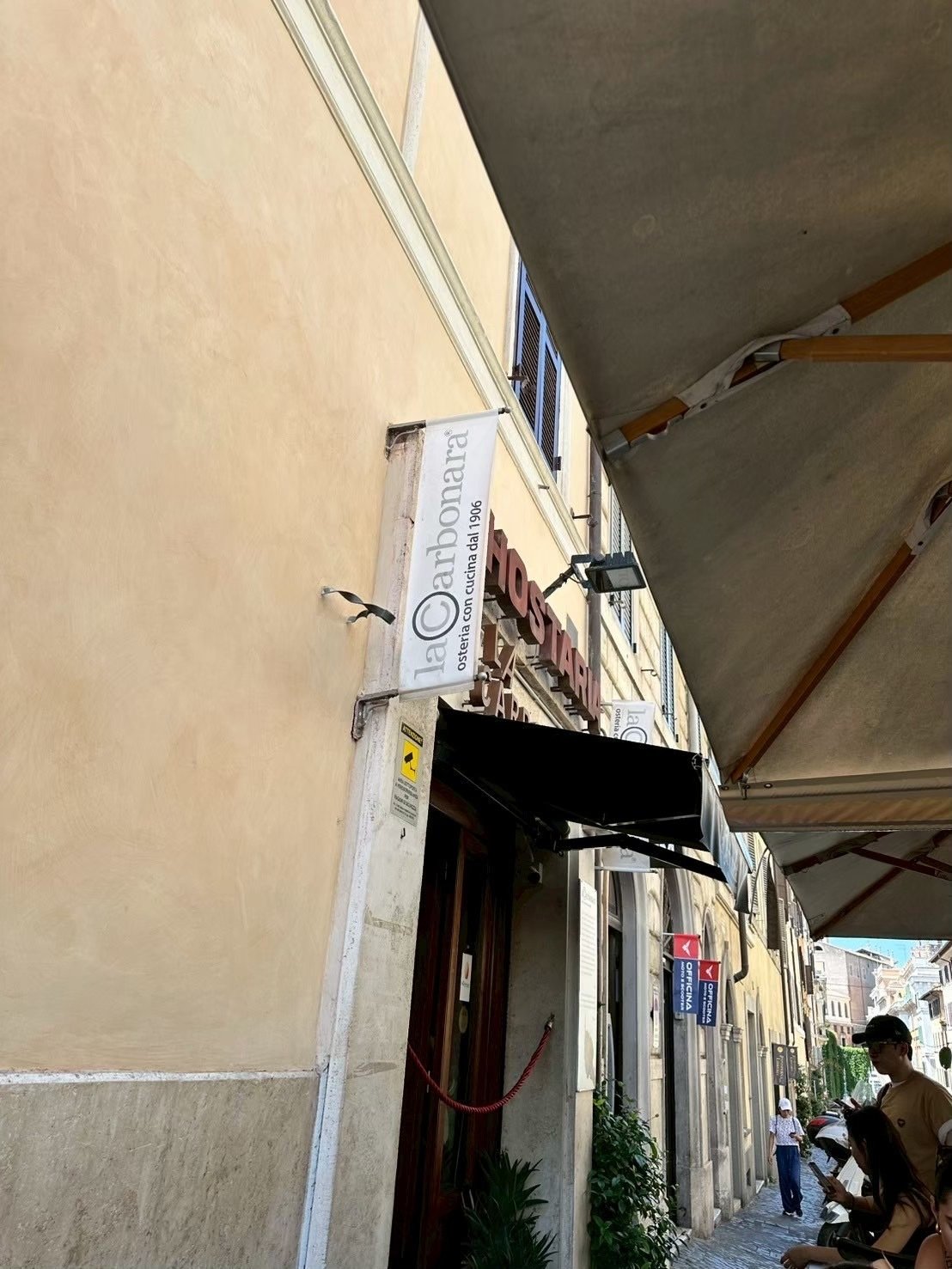 2024.12.20.イタリアローマ LA CARBONARA カルボナーラ発祥の店 ローマにはもう一軒同じ名前の偽ボナーラ発祥の店があるのでお間違えなく昼は12:30、夜は19:00オープン 激混みするのでオープン同時がベター 生クリームをつかわず卵とチーズだけのモノホンカルボナーラを。