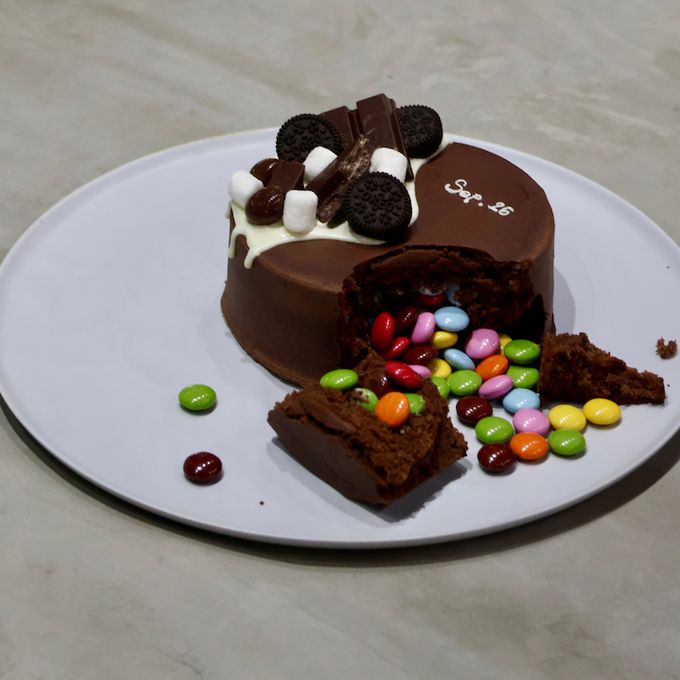 新商品の「ギミック・ケーキ」です。 カラフルなこのケーキをカットすると、中からお菓子が出てくる仕掛けがあります😌 anniversary cake decorating dessert sweets instasweet patissier アニバーサリー ケーキバースデーケーキ スイーツ クッキングラム おうち。