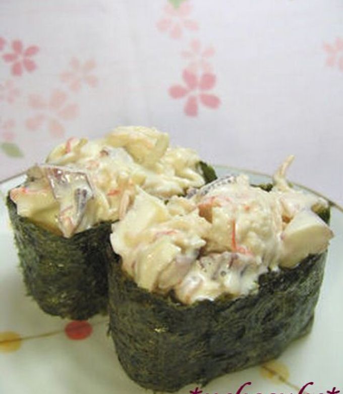 回転寿司の サラダ軍艦 の作り方 - YouTube。