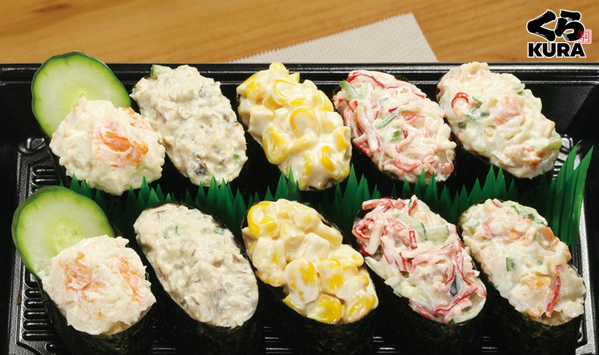 無添くら寿司 公式on X: "くら寿司のお持ち帰り寿司! オススメは『人気サラダ軍艦セット』!えびマヨやツナサラダ、コーンなど、お子様にも人気のネタが揃ってる!軍艦好き集まれ~! くら寿司アプリ内の「スマホdeお持ち帰り」なら、お家から注文できるよ!実施。
