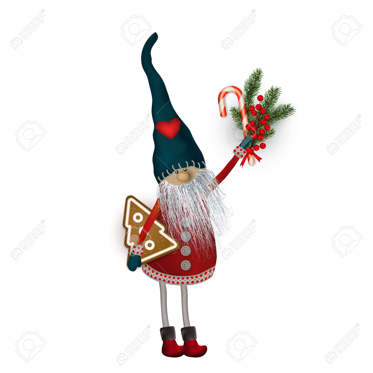 贈り物、クッキー、お菓子を持つクリスマスエルフ。スカンジナビアの民俗キャラクター - ノルウェーとデンマークのニッサー、スウェーデンのトムタルまたはトントゥ、フィンランドのトムテ。白で分離されたベクターイラストのイラスト素材・ベクターImage 111531634。
