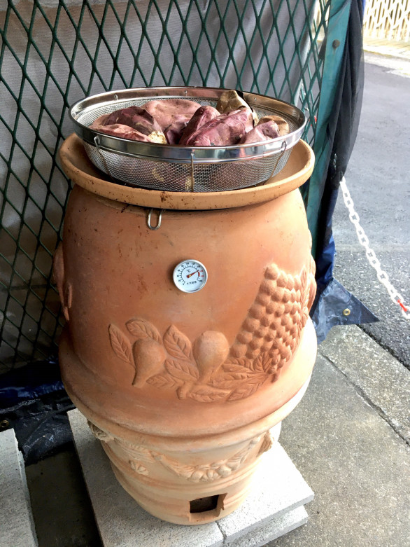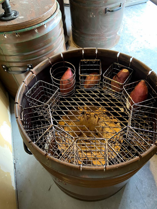 つぼ焼き芋 黒門青空市場 - 店主の自作の焼き芋つぼです。Facebook。