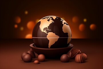 世界チョコレートデー 世界が描かれたチョコレートの地球儀Premium AI生成画像。