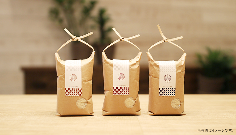 実例 マルタカのワイヤー付きクラフト角底袋を使ったお米のパッケージパケログ。
