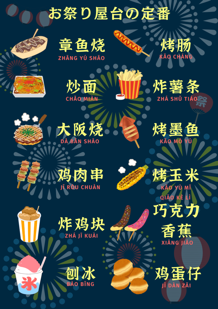 夏祭り屋台の定番を中国語で言ってみよう - 愛言社ブログ。