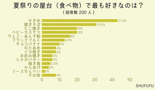 夏祭りで好きな屋台」ランキング 食べ物の屋台1位は「かき氷」、食べ物以外の屋台1位は?まいどなニュース。