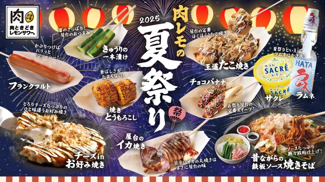 2025年6月1日開始『肉レモの夏祭り』人気屋台グルメ全10種が食べ飲み放題で楽しめるベストカレンダ。
