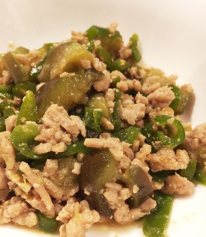 ピーマンとひき肉の甘辛炒め 子どもが取りあう!ご飯おかわり!なレシピ甘辛味にごま油の香りを加えて箸が止まりません!。