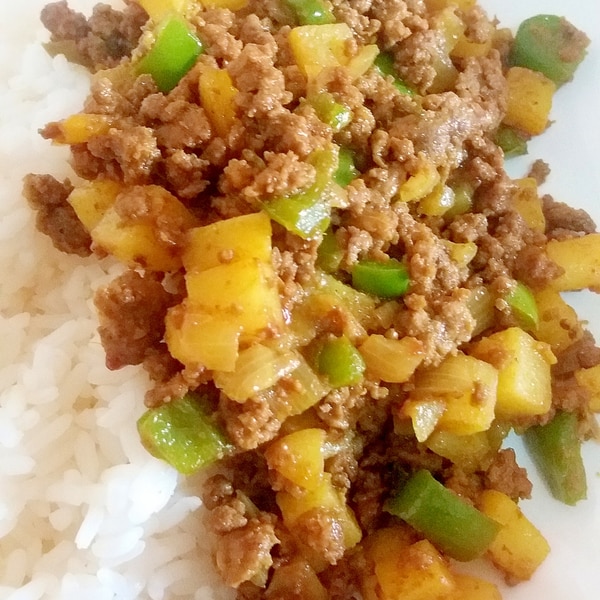 子供が喜ぶ!豚ひき肉+玉ねぎ+卵のソース&酢炒め♪。