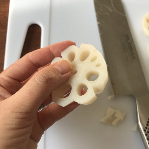 おせちのれんこんの飾り切り 花れんこん を簡単に作る方法。