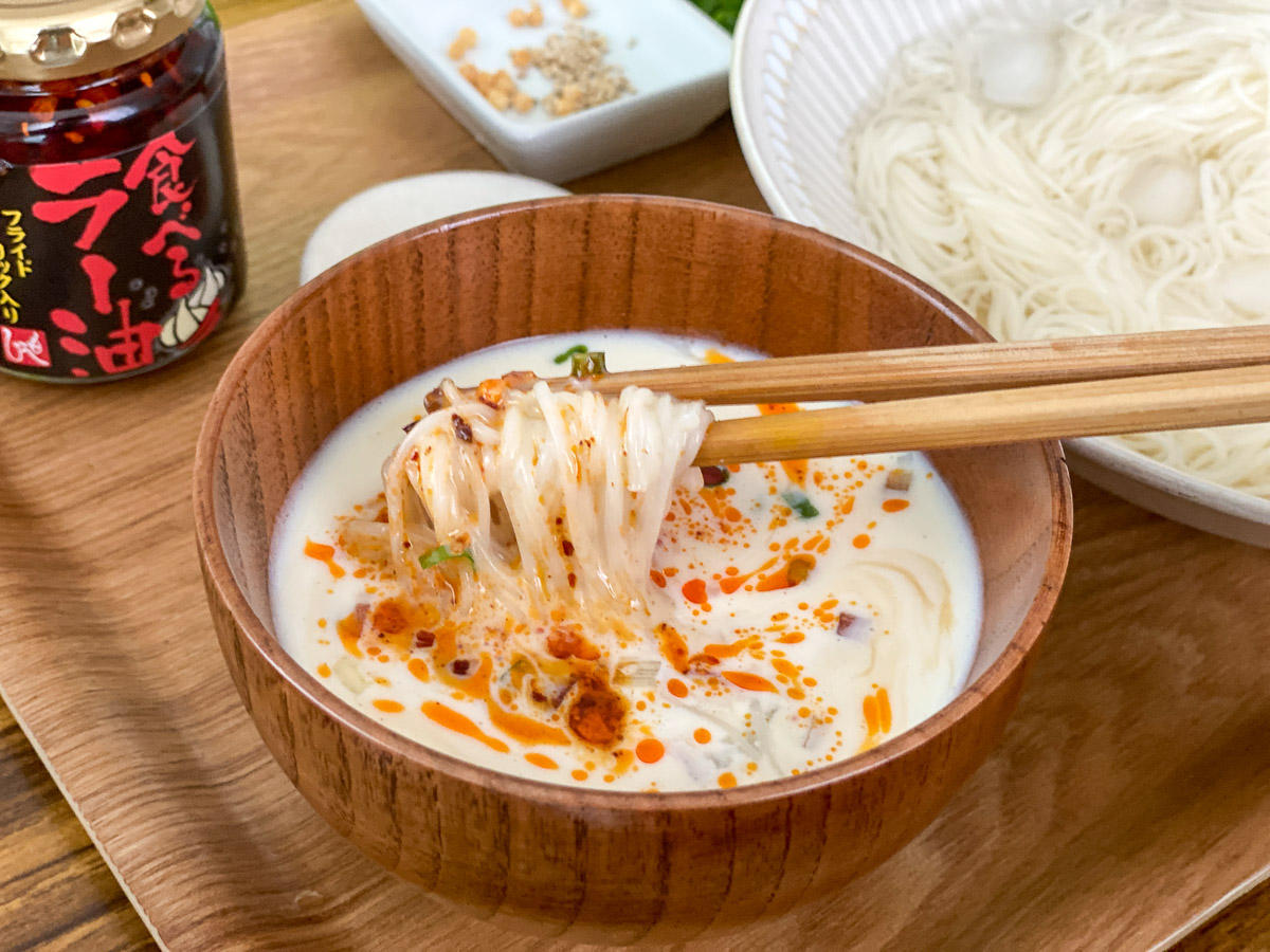 ただ混ぜるだけ!パンチもあるけど重すぎないから無限に食べられる旨さ!『ピリ辛豆乳ごまダレそうめん』の作り方 - てぬキッチン。