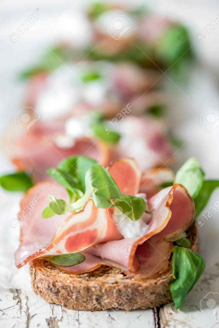 生ハムとクリーム チーズのサンドイッチをトーストにクローズ アップの写真素材・画像素材 Image 83867258。