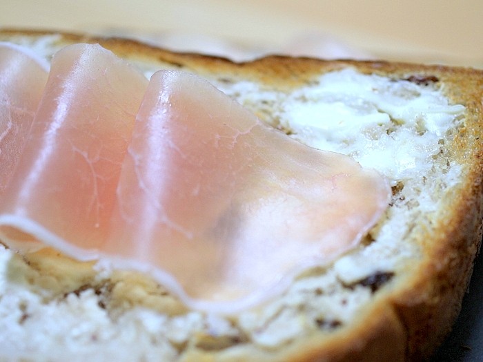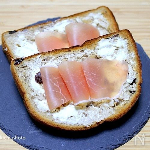 円熟 くるみ&レーズンで「生ハムクリームチーズトースト」。