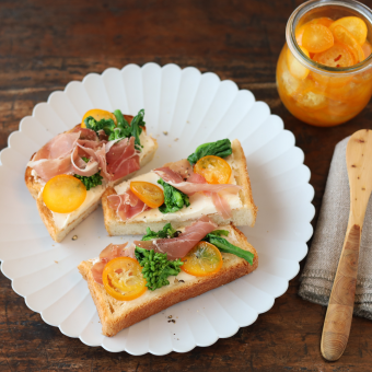 パンに合わせる料理レシピ詳細 - 金柑とクリームチーズと 生ハムのトーストおいしいパンの百科事典。