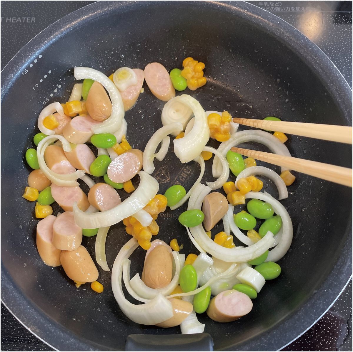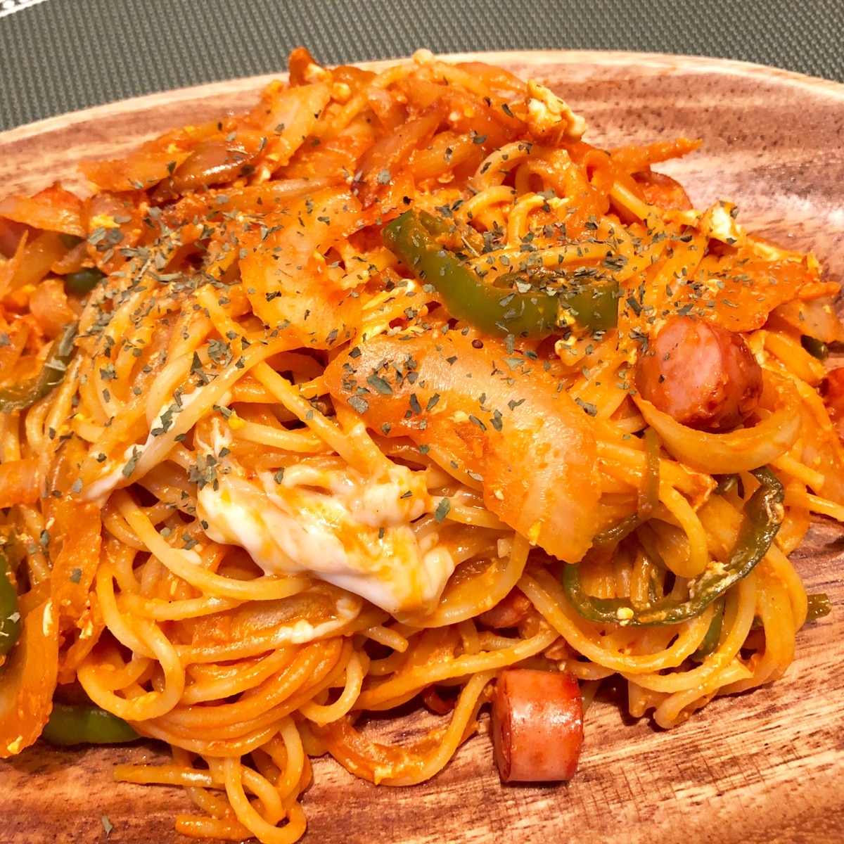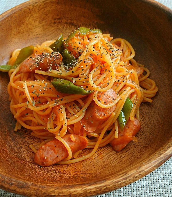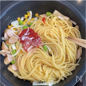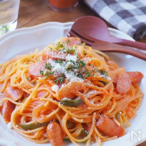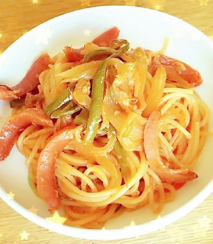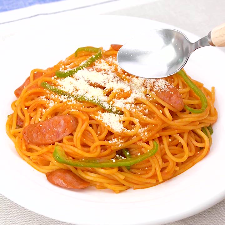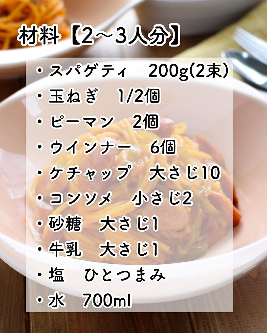 ワンパン牛乳ナポリタン🍝レシピ⏬ 👇動画での作り方はリールへ @___saaayan___ 牛乳を入れると まろやかなナポリタンになります😋ぜひお試しください🍝 お子様は絶対に好き👦 ▫️ 材料 ・パスタ 1束 ・水 350ml ・牛乳 100ml ・ウインナー 2本 ・ピーマン 1個。