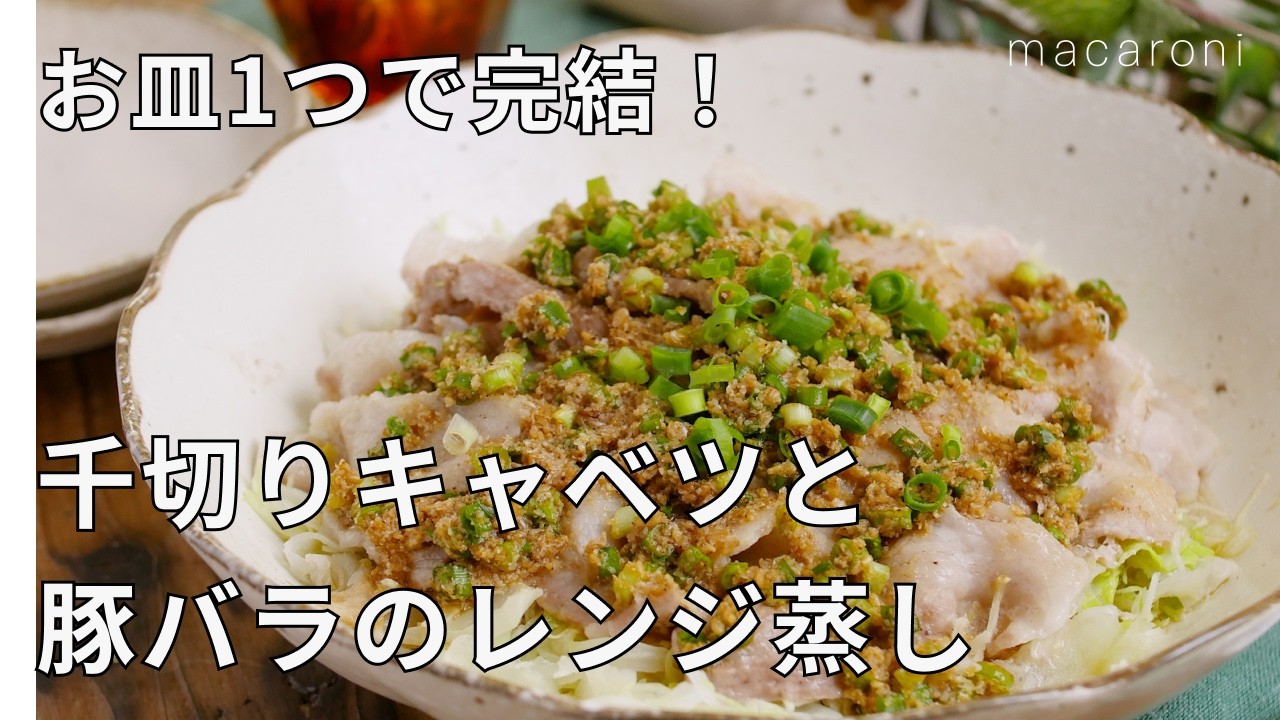 千切りキャベツと豚バラのレンジ蒸し お皿1つで完結!!レンジで加熱するだけ macaroni マカロニ- YouTube。