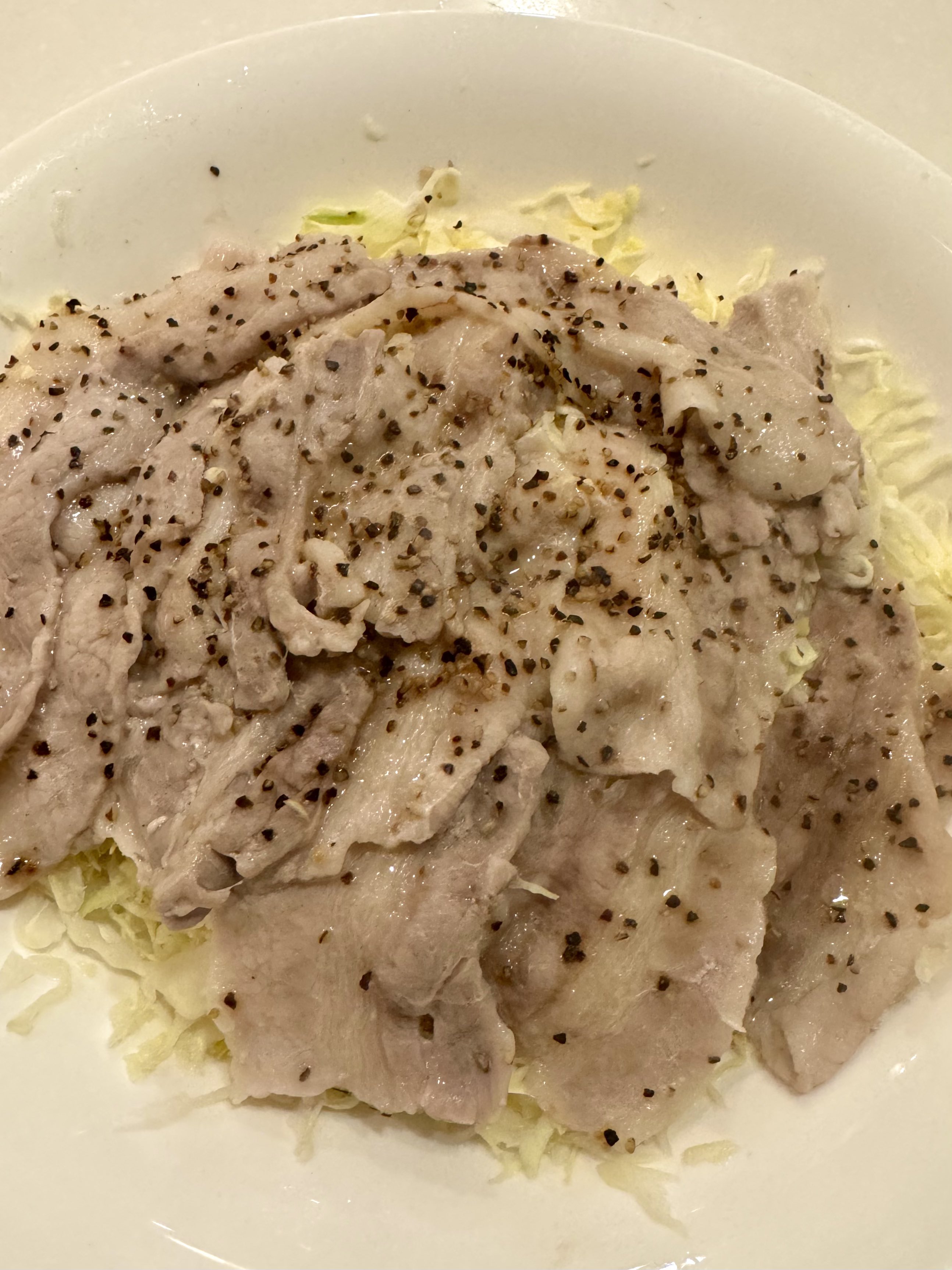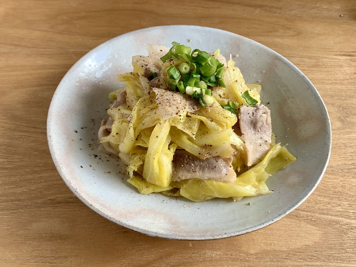 お皿1つで完結!千切りキャベツと豚バラのレンジ蒸し。