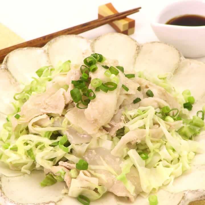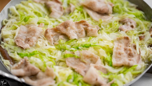 ポン酢あんをかけて♪千切りキャベツと豚バラの重ね蒸しHow To Make Shredded Cabbage and Pork bellymeat Over Steaming。