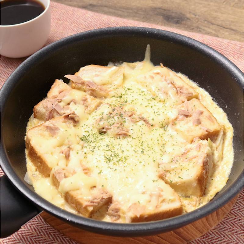 10分でできるワンパン朝ごはん!?ツナとチーズのパンプディング 食パンアレンジ。