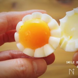 ゆで卵」を“包丁を使わずに”花型にする方法。お弁当に入れるとかわいい。