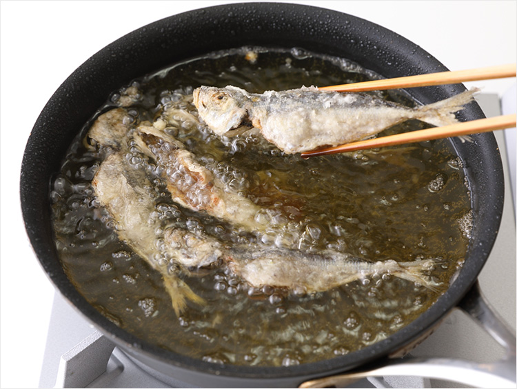 魚の唐揚げを骨までカリッと揚げるコツ!硬い背骨は骨せんべいにも。