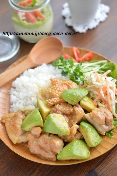 チキンとアボカドの照り焼き風ごはん」で、カフェ風ワンプレート♪decoの小さな台所。~体にやさしい妄想料理レシピ、薬膳メモ付き~。