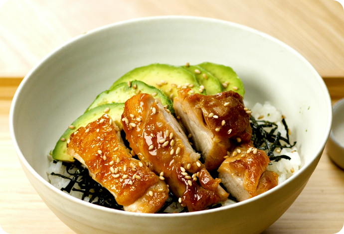 甘酸っぱくて美味! 鶏肉とアボカドの梅照り焼き丼。