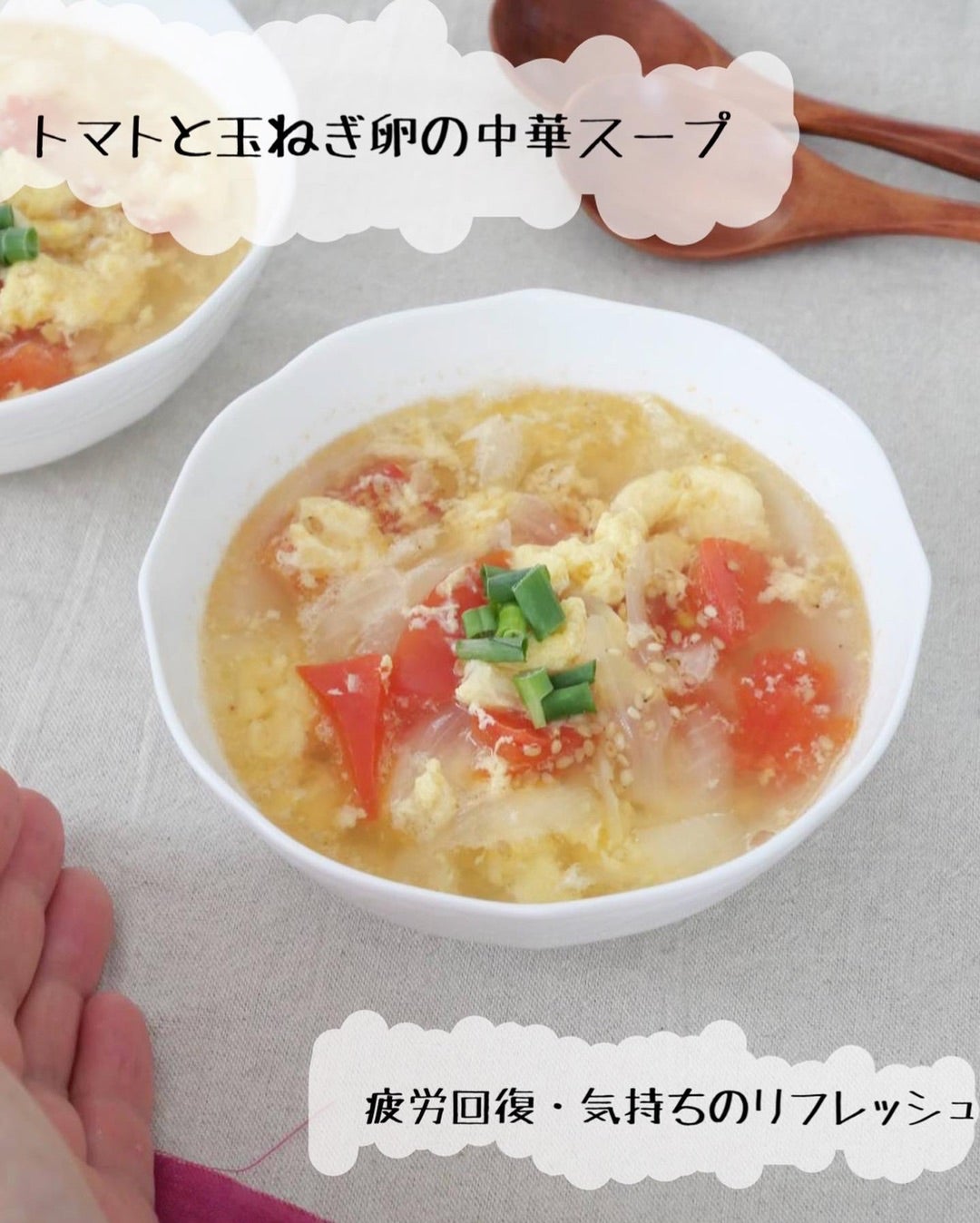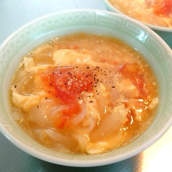 トマトと玉ねぎのふわたま中華スープ パパッと作れて絶品。