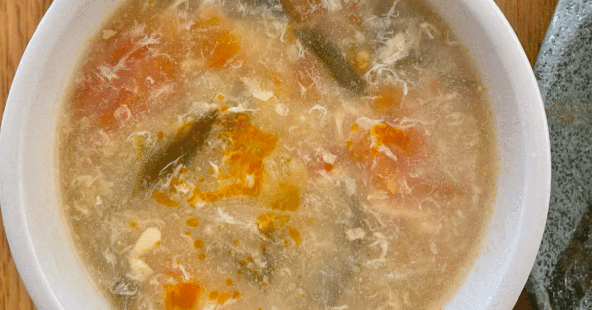 冷凍トマトレシピvol.3 トマトと卵の中華風スープ。