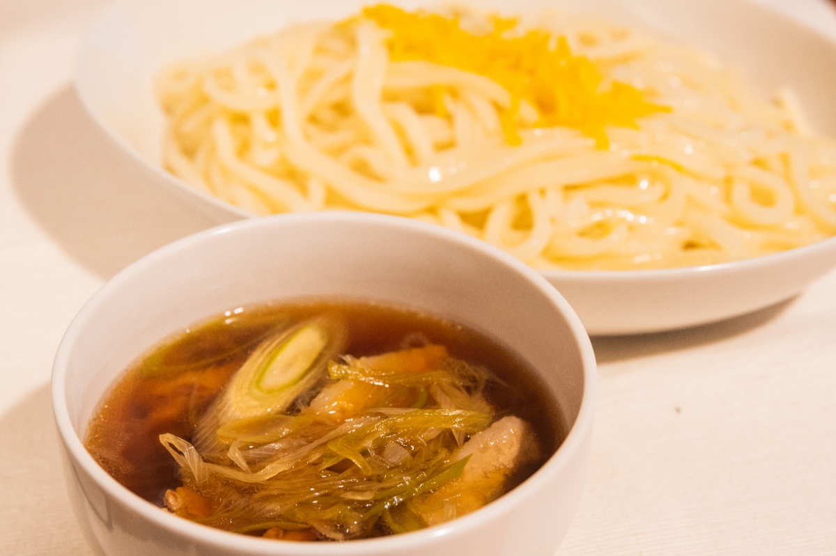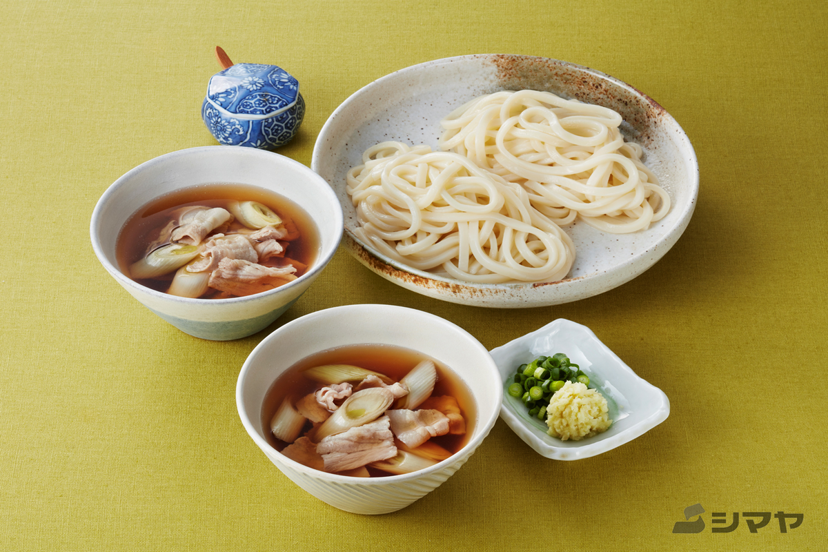 釜揚げ&肉汁つけうどんのレシピ 作り方:白ごはん.com。