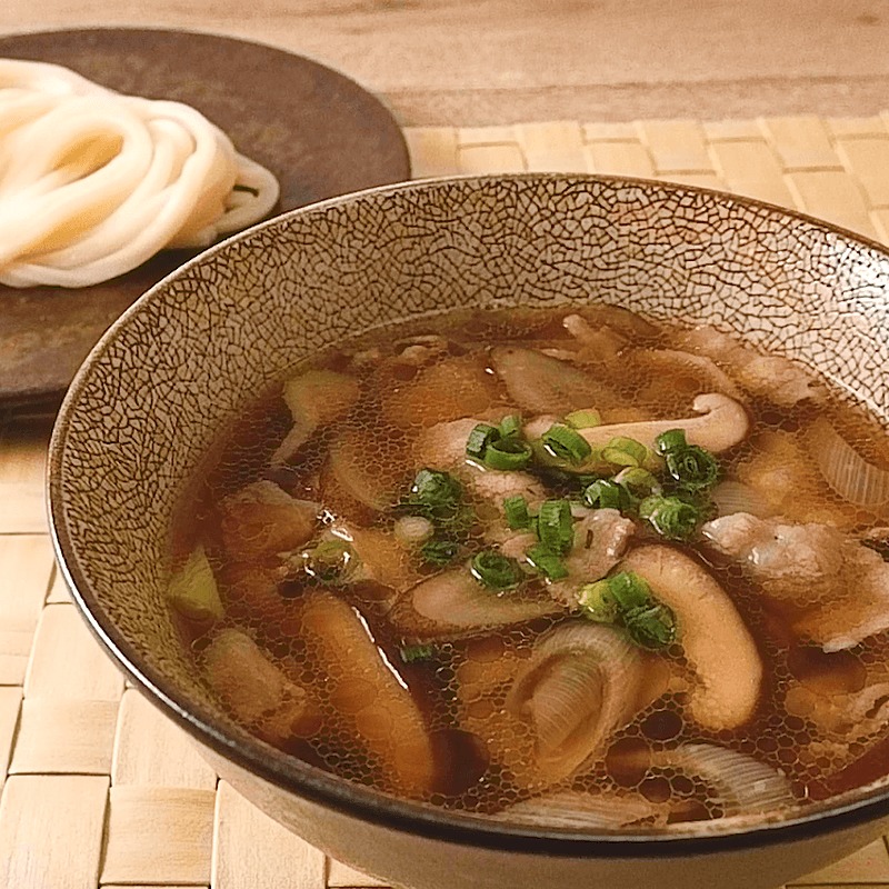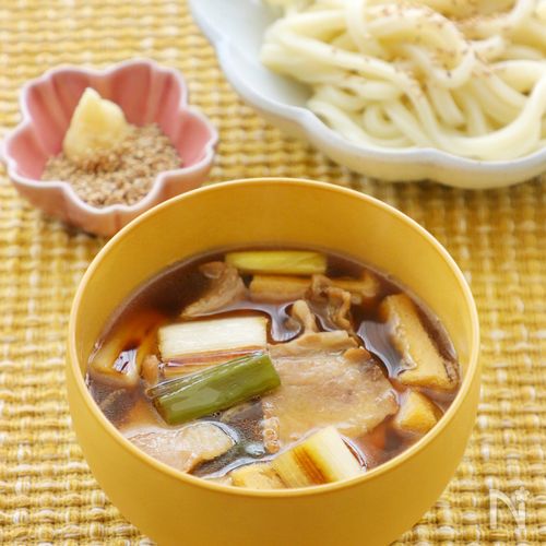 だしブレンドrecipe肉汁つけうどん:白ごはん.com。