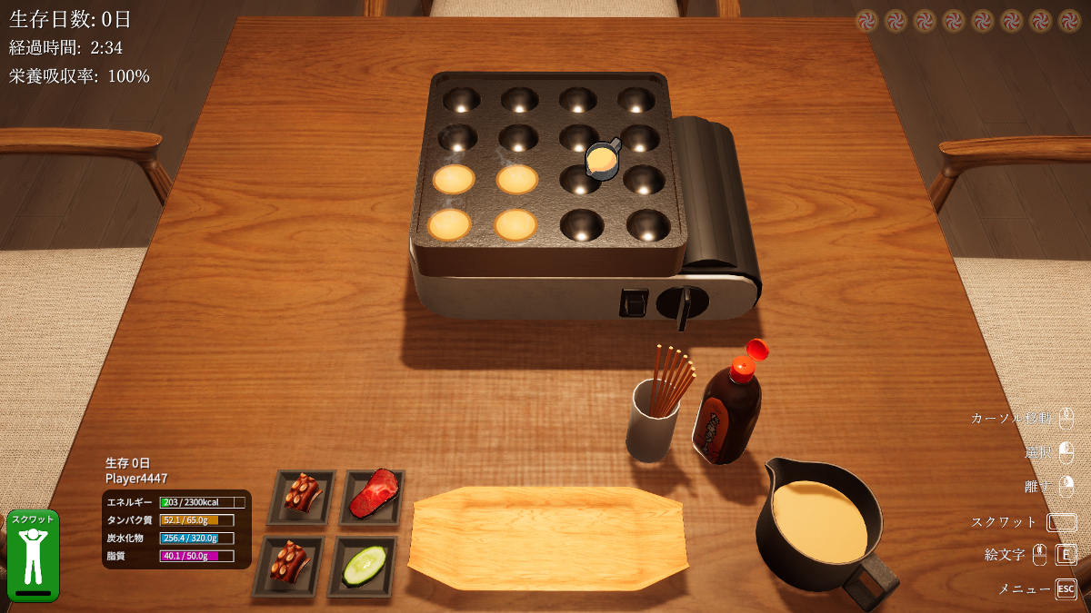 たこパ サバイバル』レビュー。栄養バランスが悪いとデッド? カロリー消費のためにスクワット!? カオスで忙しいサバイバルでしたゲーム ・エンタメ最新情報のファミ通.com。
