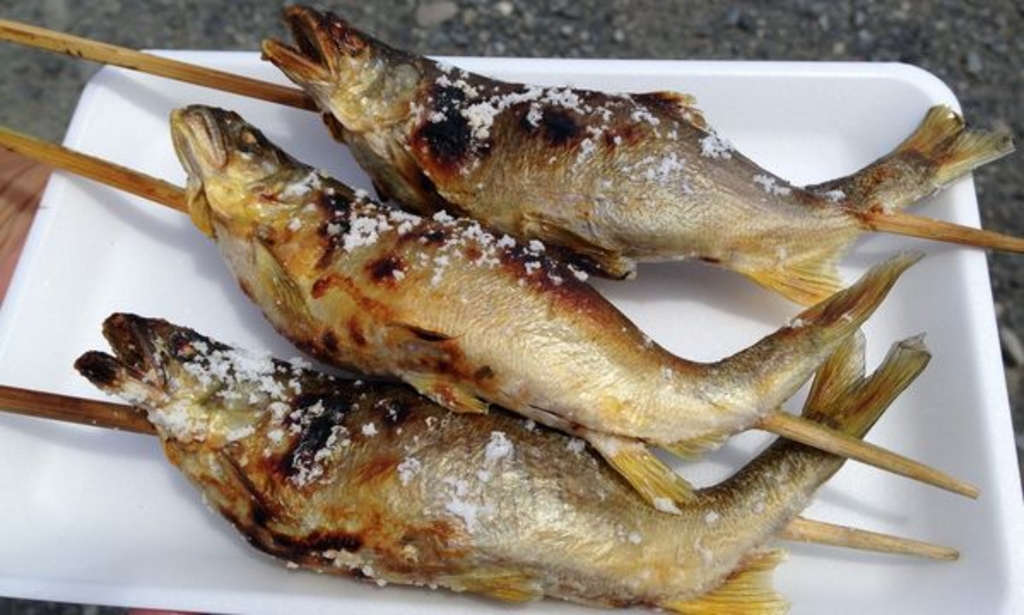 河原で食べる鮎の塩焼きは最高の美味しさです - 高橋商店のクチコミ - じゃらんnet。