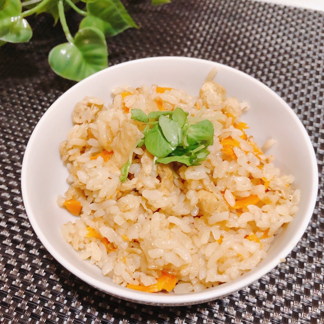 手軽にできる! 鶏肉とえのきのポン酢炊き込みご飯。