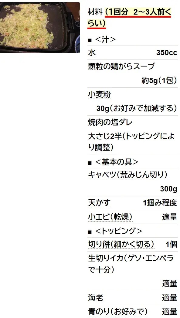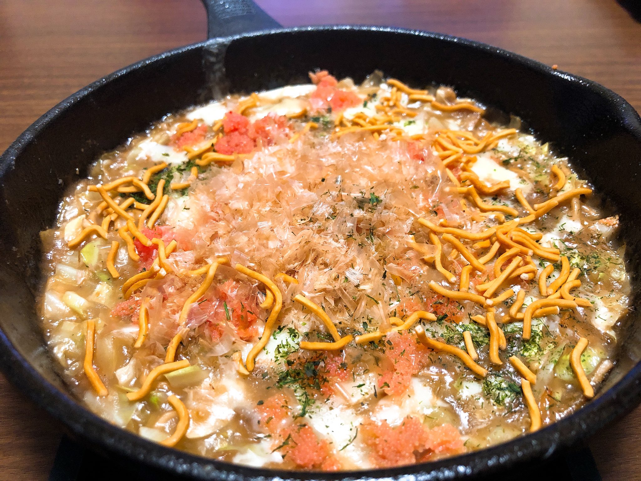 至高のもんじゃ焼き。 料理のお兄さんリュウジさんのレシピ。いつもお世話になってます。つくるの3回目。前回同様レシピの分量を1 2にして、フライパンとカセットコンロで作りました。簡単で美味しくてツマミになって、まんまとハマった。火にかけながらフライパンから。